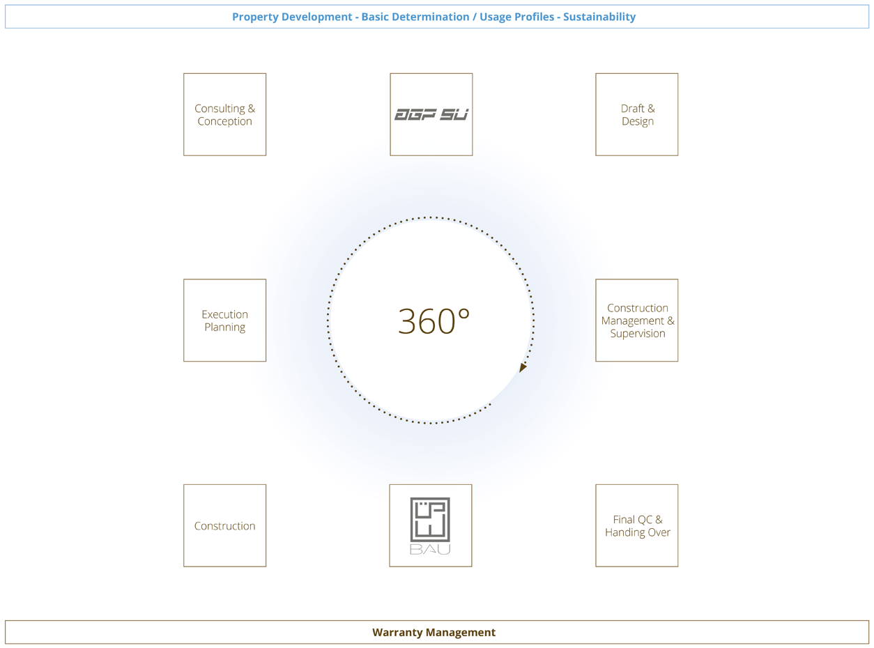 All services from detailed cost calculation, tendering of tenders to construction management to structural implementation including final acceptance/quality control.